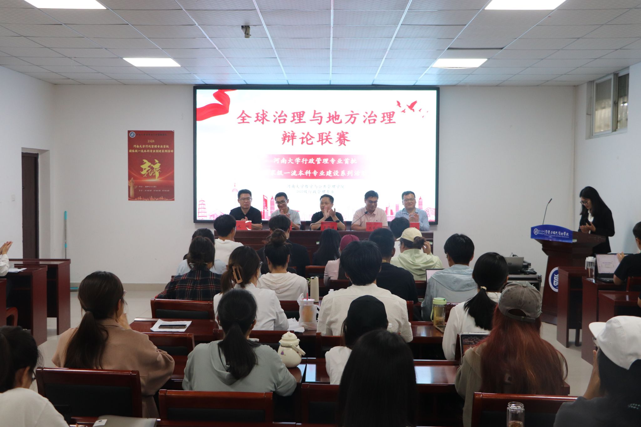 2024年度全球治理与地方治理辩论联赛在学院第四会议室举行正式开幕,院党委办公室负责人王天宇、院团委办公室负责人刘耀,行政管理系专业教师樊山峰、元帅出席开幕式,2022级行政管理专业全体本科生参加。行政管理系主任吴岚波,学院辩论队成员李跃辰、朱玉娇、徐晗曦分别担任教师和学生评委。