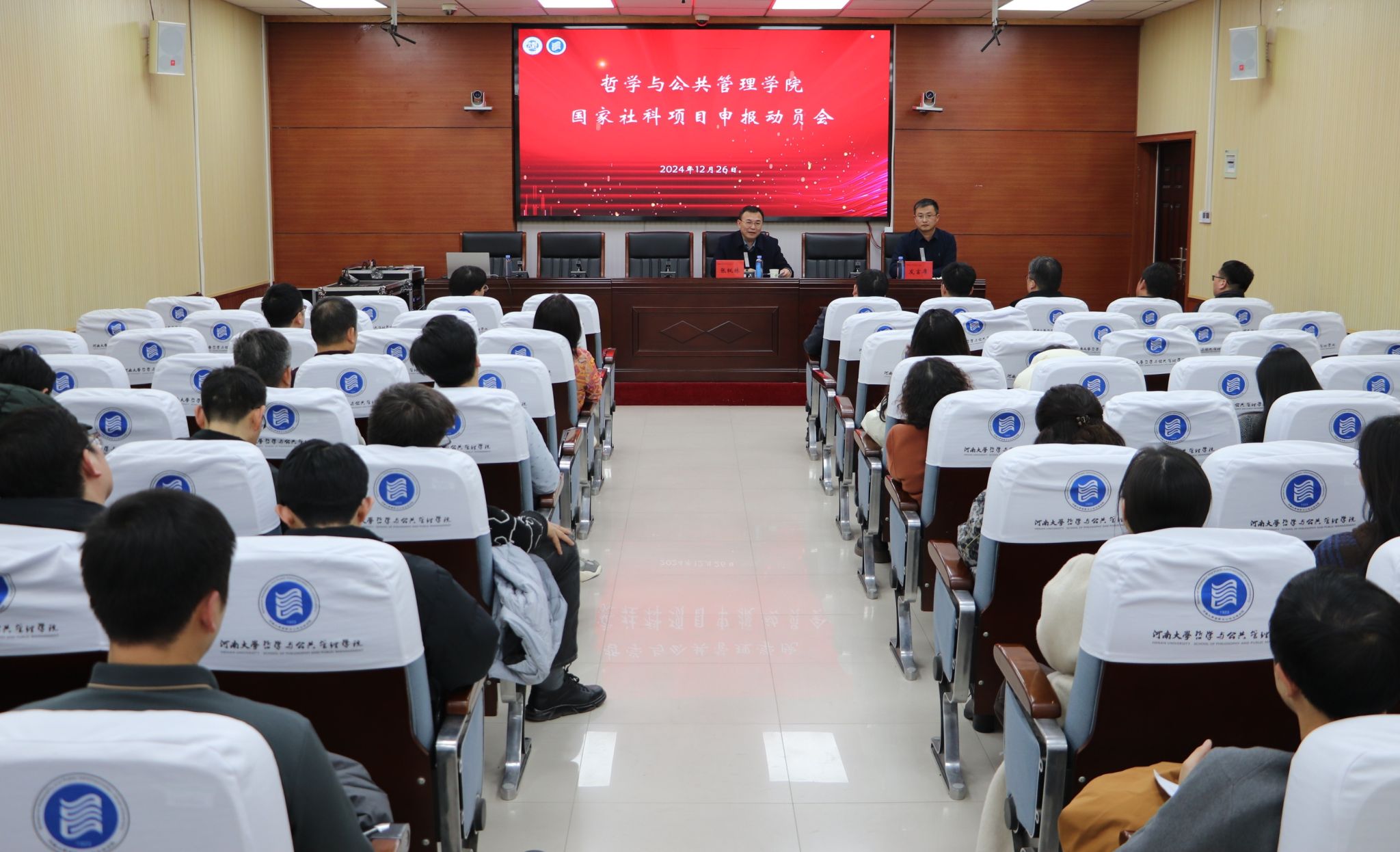 为做好2025年度国家社科基金项目申报工作,提升申报质量,12月26日下午,麻豆在线在第一会议室召开国家社科基金项目申报动员大会,校人文社科研究院副院长张枫林应邀出席,学院全体教职工参加会议。会议由副院长赵炎峰主持。