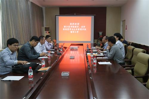 9月26日下午,新乡医学院研究生处处长丰慧根,管理学院书记王正晓等一行前来麻豆在线就MPA学生教学管理机制等进行实地考察与经验交流。麻豆在线副院长姬志闯、汪来杰及相关负责人在三楼小会议室接待了客人。