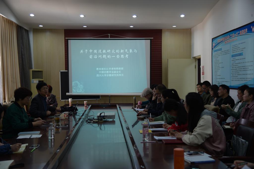 本次学术讲座,盖教授围绕着百年中国道教研究的新气象、当前道教研究的热点问题与道教学术前沿领域以及对当代道教研究方法的反思这三个方面展开。盖教授认为道教学的研究是“百年历程,少年气象”,是经过几代学人的不懈坚守与沉潜积淀,才使其由“偏门险学”发展成为“显学”。道教学研究的对象也由最初的道教和道教文化本身,拓及到与其相关的十二大分支学科。接下来,盖教授以“道教学术前沿”为主题,介绍了当前道教研究的热门话题和前沿领域。随着道教学的边界不断拓展,以及道教研究的“在地化”和“地方化”趋势的加强,本土道教研究也后来居上,尤其是区域道教与地方道教研究、宗派和教派研究、地方道教法术、科仪与社会生活互动研究和道教思想与文化的现代性转化研究等等已成为如今道教研究的热点内容。