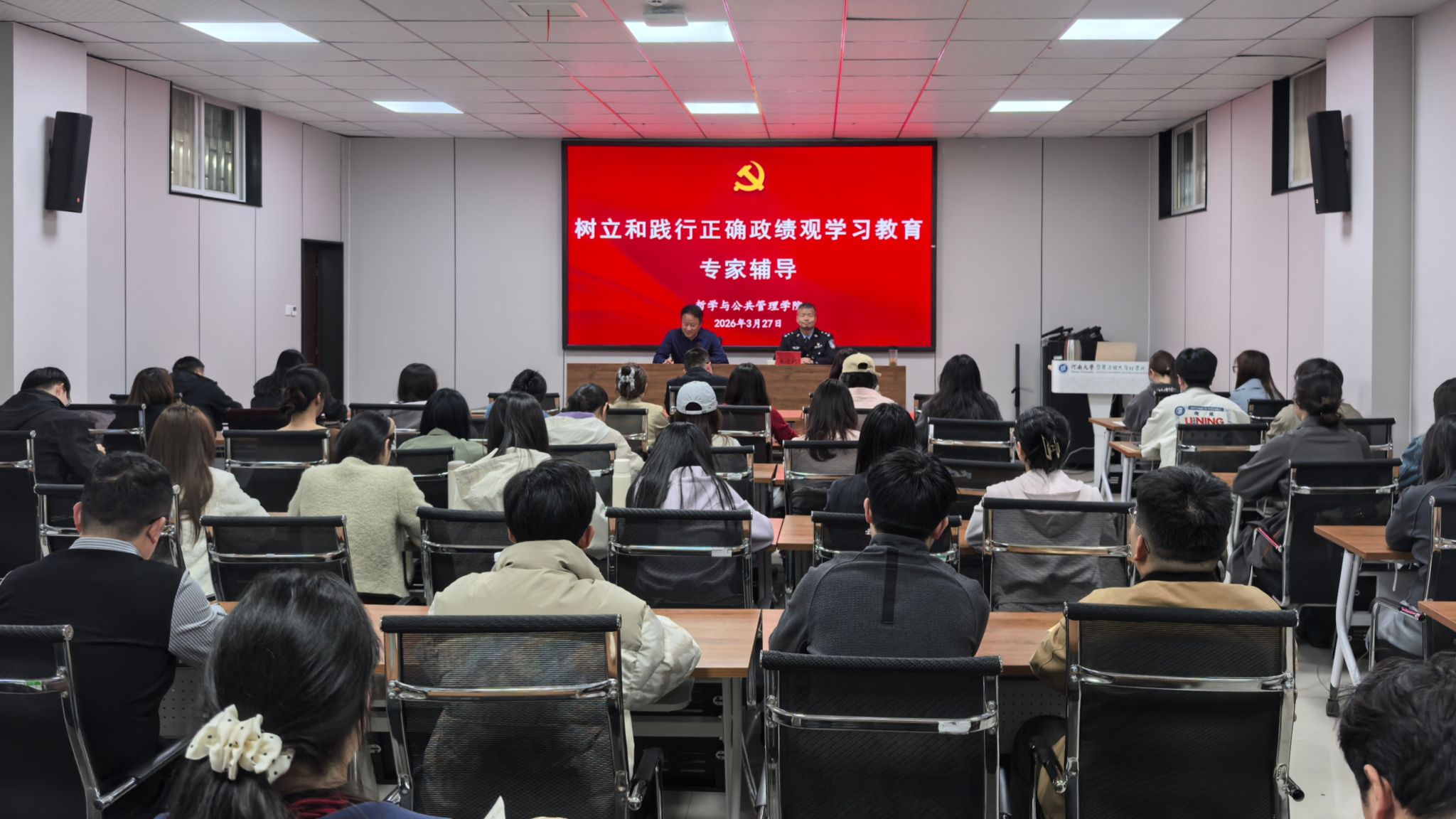 按照学校关于开展树立和践行正确政绩观学习教育工作安排,3月26日至27日,麻豆在线用两天时间,采取集中学习、个人自学、专家辅导和交流研讨相结合的方式,举办树立和践行正确政绩观学习教育读书班。学院党委理论学习中心组全体成员、各基层党支部书记、各科室负责人及师生党员代表参加。