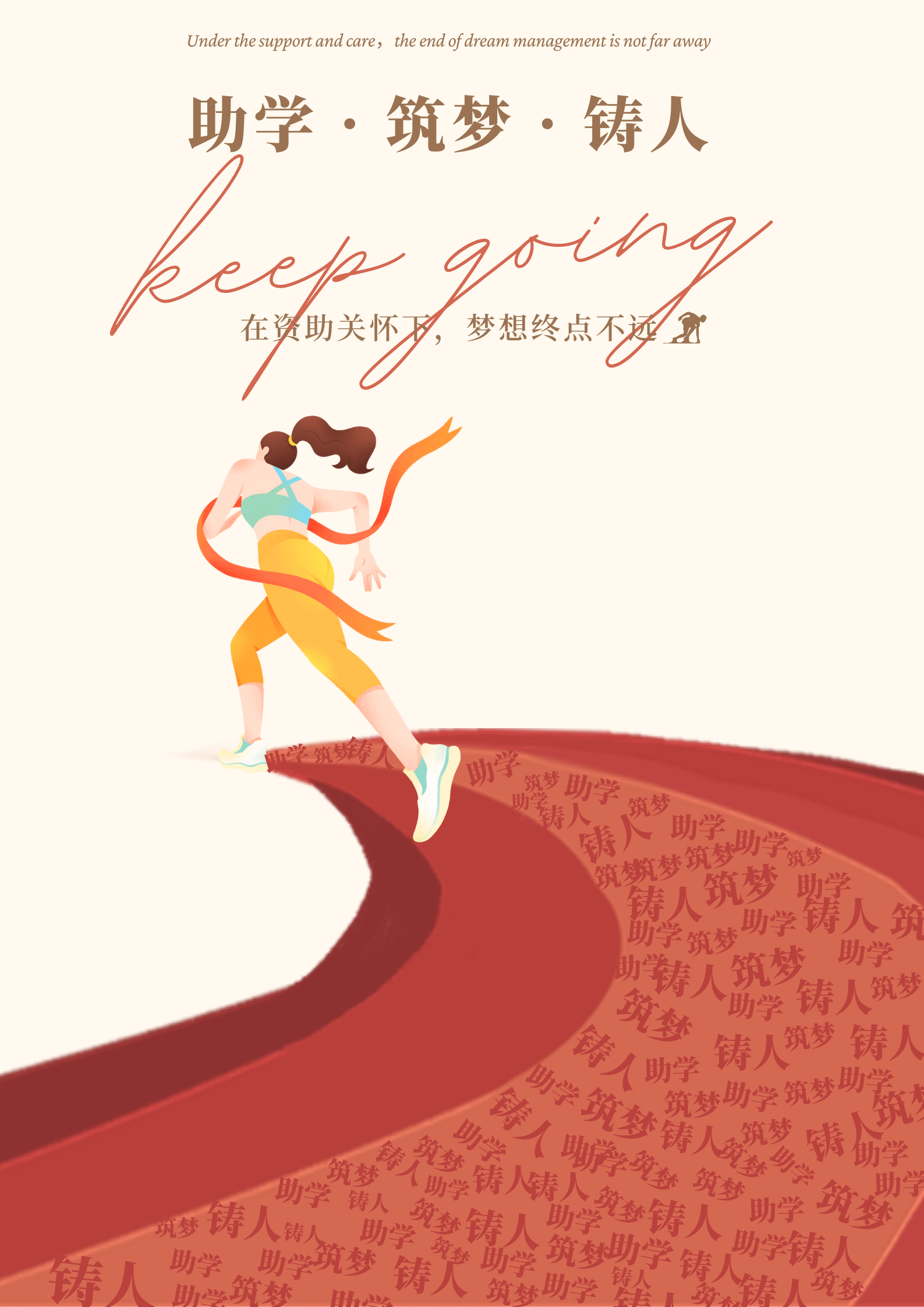 作品简介:红色的“助学”“筑梦”“铸人”六个字镌刻于跑道,少年在这条跑道上奋力奔向前方