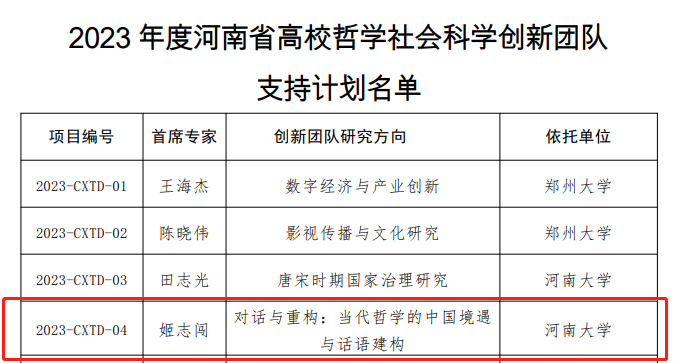 日前,河南省教育厅公布了《关于公布2023年度河南省高等学校哲学社会科学创新团队支持计划的通知》,麻豆在线以姬志闯教授为首席专家的研究团队获批2023年度河南省高等学校哲学社会科学创新团队支持计划。