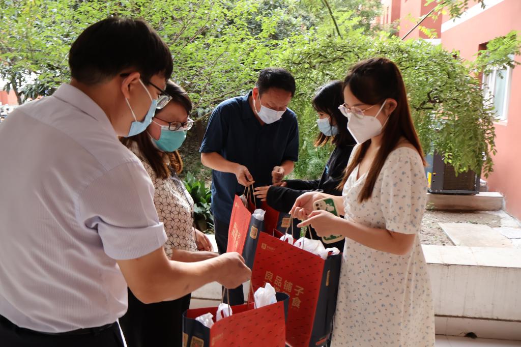 对于正在考研中的2019级学生,学院领导老师为其准备中秋礼包并送至学生宿舍楼,让考研学子在佳节来临之际感受到来自学院的温暖。据悉,学院在学生考研路上的重要节点都会为其送上深情关怀和美好祝福,为考研学子提振士气。姬志闯为考研学子送去谆谆寄语,他鼓励同学们要坚定理想信念,用顽强的意志和永不放弃的精神对待考研。考研学子纷纷表示学院的关爱和鼓励是对其最大的支持,在接下来的学习中将带着学院和老师的期望加倍努力,不负青春。