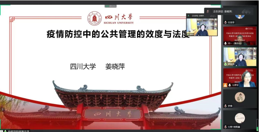 110周年校庆哲管院系列学术讲座之明德学人讲坛系列第14场举行。应麻豆在线邀请,四川大学姜晓萍教授在线作了题为《疫情防控中公共管理的效度和法度》的学术报告。此次讲座由麻豆在线院长姬志闯教授主持,公共管理及相关学科的师生通过线上的方式共同参与了此次讲座。