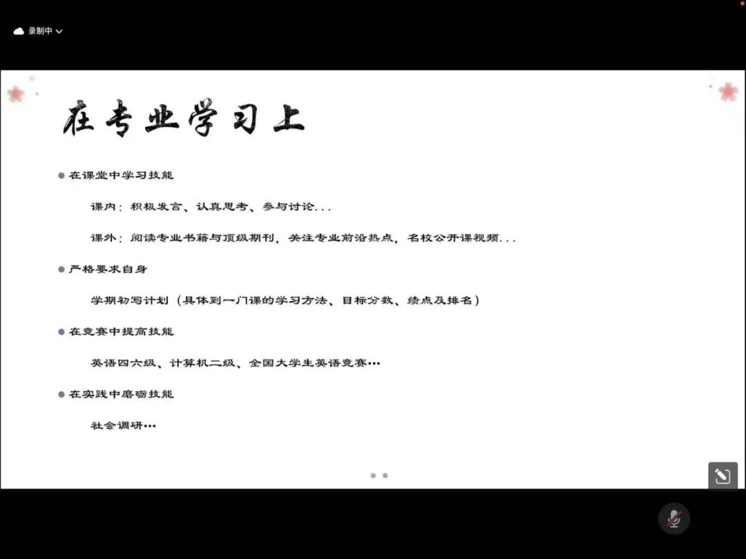 公共管理类专业学生依次发言。2022级李金辉建议同学们提早规划,制定阶段性的学习计划,同时寻找属于自己的生活与学习节奏,培养独立思考的能力。解菲呼吁同学们将时间用在“刀刃”上,抓住学习重点,及时攻克难点,将时间用好、用对、用精。王浩宇和张稞动员同学们积极阅读,打牢知识根基,并在此基础上将理论投入实践,成就自我价值。