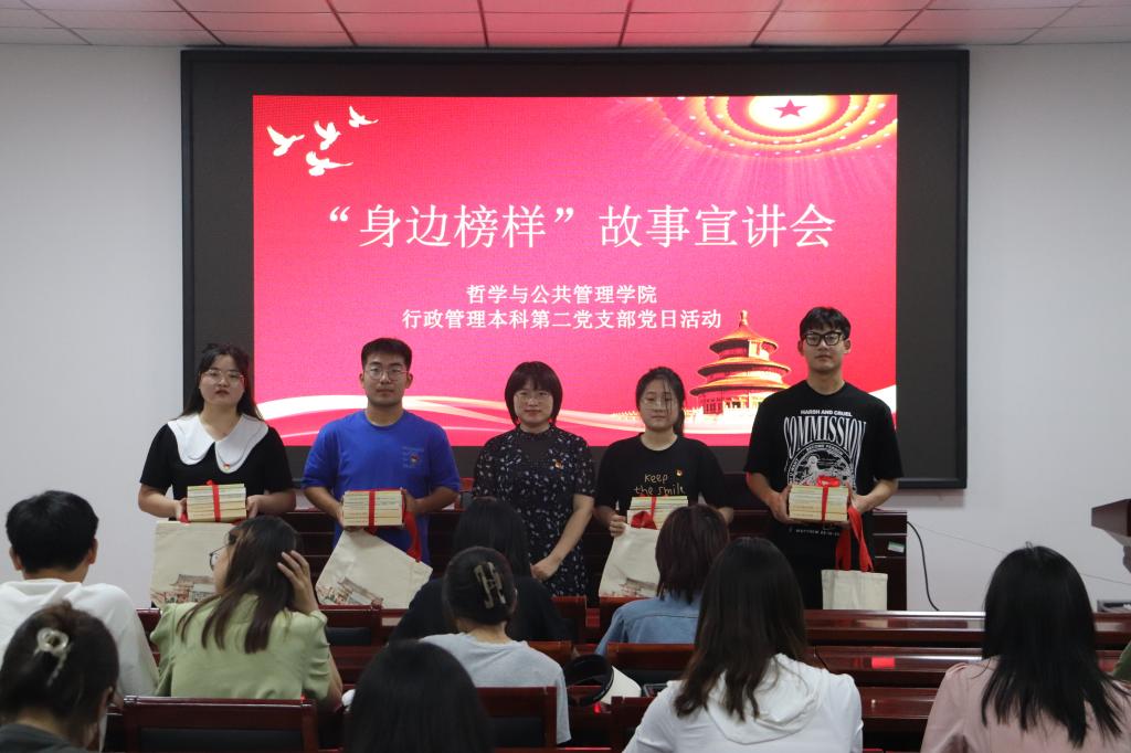 为充分发挥先进典型示范引领作用,引导党员向榜样看齐、向榜样学习。6月14日,行政管理本科第二党支部在学院第三会议室开展“身边榜样”故事宣讲活动。