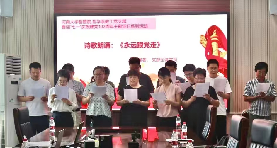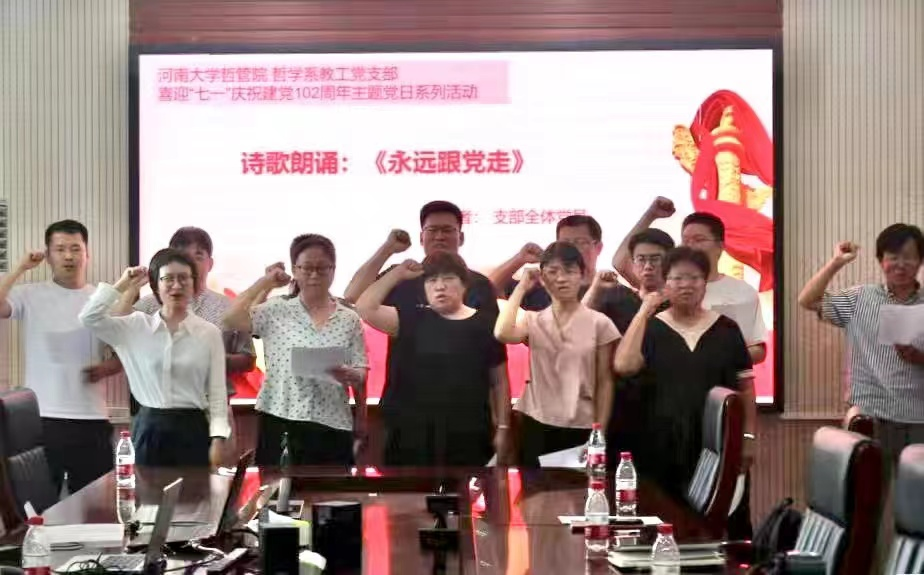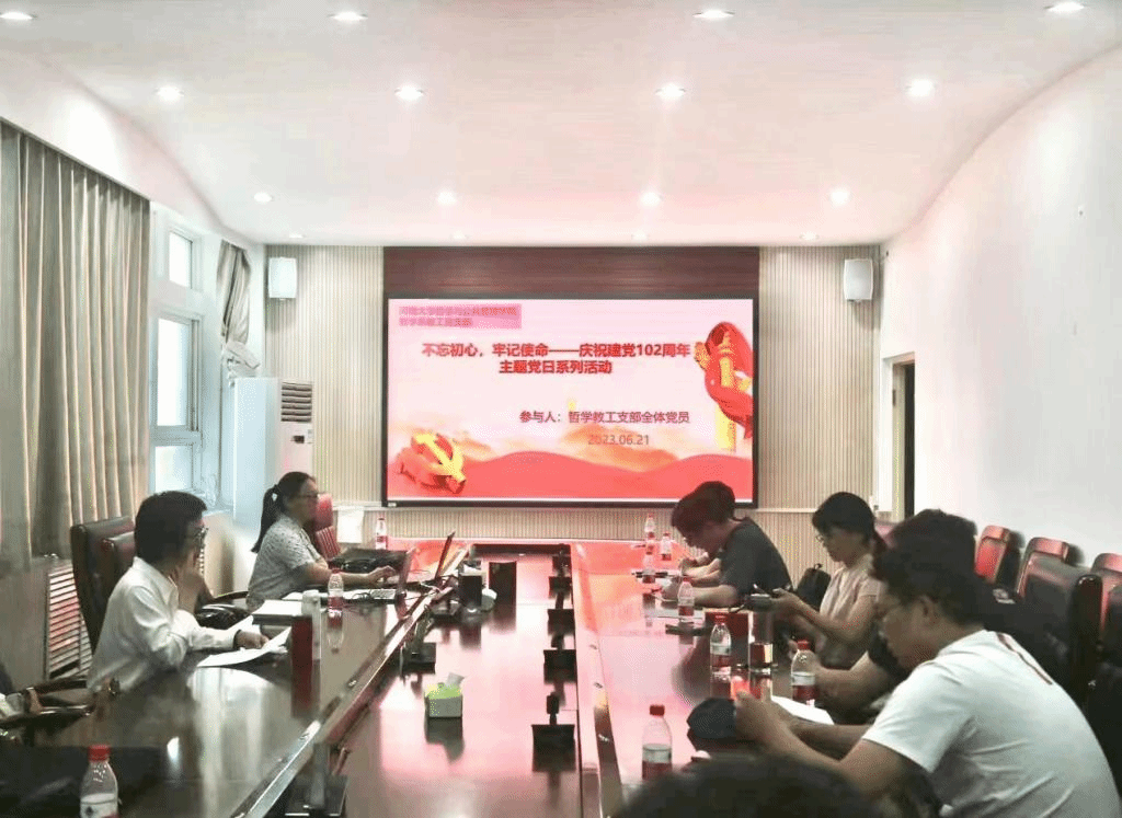 哲学系教工党支部在学院第二会议室开展了“不忘初心,牢记使命——庆祝建党102周年”主题党日活动。按照“学思想、强党性、重实践、建新功”的总要求,积极引导支部党员在习近平新时代中国特色社会主义思想指导下,践行初心,勇担使命。哲学系教工党支部全体党员参与了此次活动,活动由党支部书记焦卫华主持。