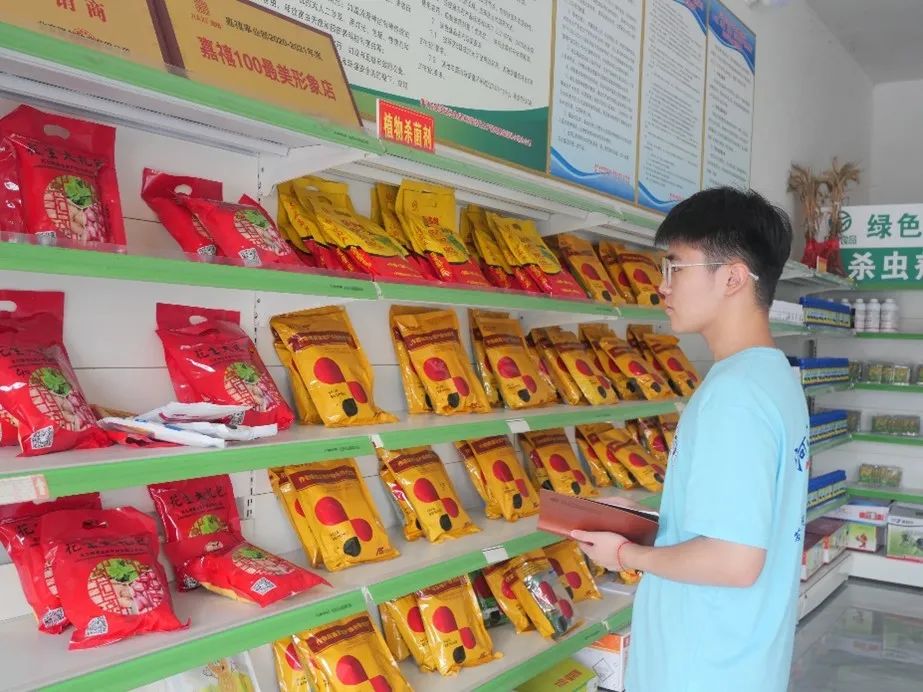——图为实践队成员参观振群家庭农场农药门店——