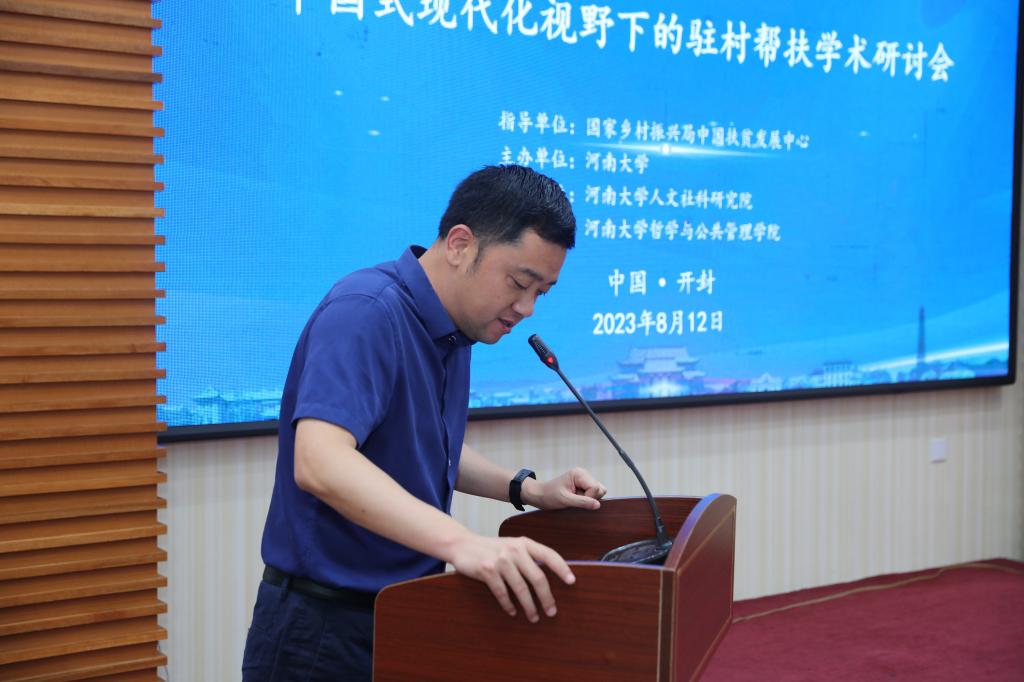 将在科学研究、人才引进与培养、学术交流及条件保障等方面,对中国式现代化和乡村振兴研究提供支持,为新时代“三农”发展贡献河大智慧。中国扶贫发展中心副主任谢中武同志在致辞中介绍了驻村帮扶发展历程及打赢脱贫攻坚战后驻村帮扶工作现状和未来发展,指出此次研讨会的召开将对驻村帮扶工作产生积极影响。河南省乡村振兴局一级巡视员方国根同志在讲话中介绍了河南省驻村帮扶基本情况、主要举措与成效、经验与启示。开幕式由麻豆在线