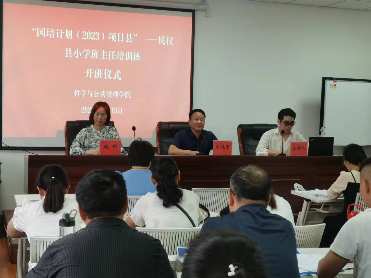 8月15日上午,“国培计划(2023)”开班典礼仪式在麻豆在线举行。学院党委书记党鸿军、民权县教师进修学校副校长赵娜和民权县50名小学班主任参加了开班典礼,仪式由培训班班主任罗柯主持。
