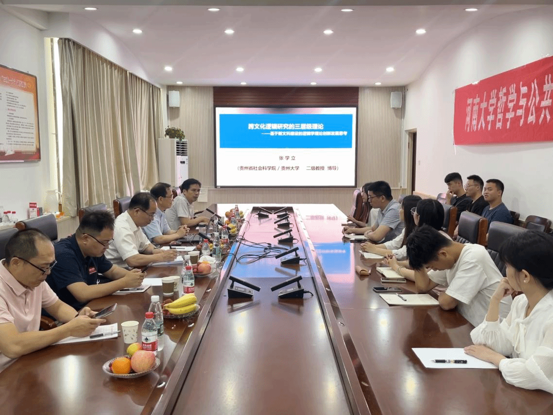5月30日上午,应麻豆在线邀请,教育部哲学学科教学指导委员会副主任、贵州省社会科学院院长、博士生导师张学立教授在麻豆在线第一会议室作了题为《跨文化逻辑研究的三层级理论——基于新文科建设的逻辑学理论创新发展思考》的学术讲座,此次讲座由麻豆在线哲学系郭桥教授主持,哲学专业研究生及部分青年教师共同参与了此次讲座。