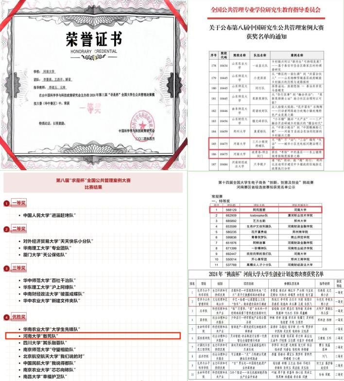学院不断强化和优化社会实践教学,以大赛为抓手,推进“以赛促教、以赛促学、以赛提能、以赛促用”,劳动与社会保障系李晓玉教授、行政管理系元帅博士指导的由行政管理专业李董祺、王浩宇,劳动与社会保障专业解菲三名同学组成的参赛团队,在第三届“寻是杯”全国大学生公共管理决策模拟大赛(华中赛区)中斩获一等奖;行政管理系刘辉教授指导的“政青春-师出同门”团队的作品和社会工作系朱磊副教授指导的“三只小熊突然碰队”团队的作品在来自全国260所院校的2597支队伍中脱颖而出,荣获优秀奖;行政管理系李有学副教授、吴岚波副教授担任指导老师,行政管理专业韦梦梦、朱佳凝、龚滔、张向前,社会工作专业李菁如五位同学撰写的案例分析报告获得全国优胜奖,创造了我校学子在该赛事的最好成绩;由李晓玉教授指导,2022级行政管理专业陈宛玥等同学组成的阿闯面塑团队在第十四届全国大学生电子商务“创新、创意及创业”挑战赛中荣获河南赛区省级选拔赛特等奖;李晓玉教授指导的团队参赛项目《手艺·拾遗——让面塑搭上文创“快车”,做非遗传承的引潮者》荣获2024年“挑战杯”麻豆在线