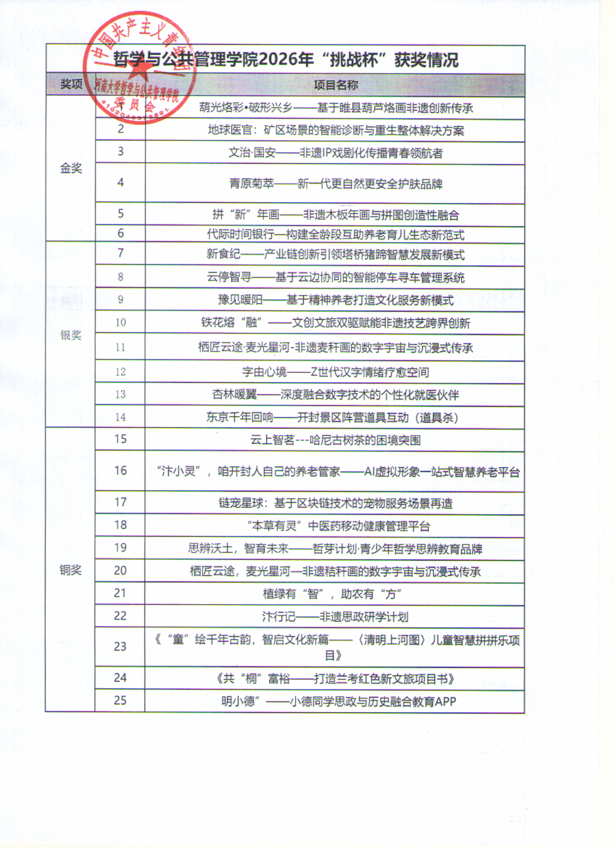 2026年“挑战杯”麻豆在线 大学生创业计划竞赛结果